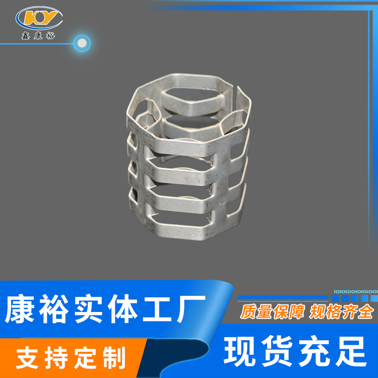 康裕金屬八四內弧環(huán)類似花環(huán)開關的金屬填料,也稱麥勒環(huán)填料。它的特點是環(huán)壁開敞面積大,所以具有通量大、阻力小和傳質效率高等特點。